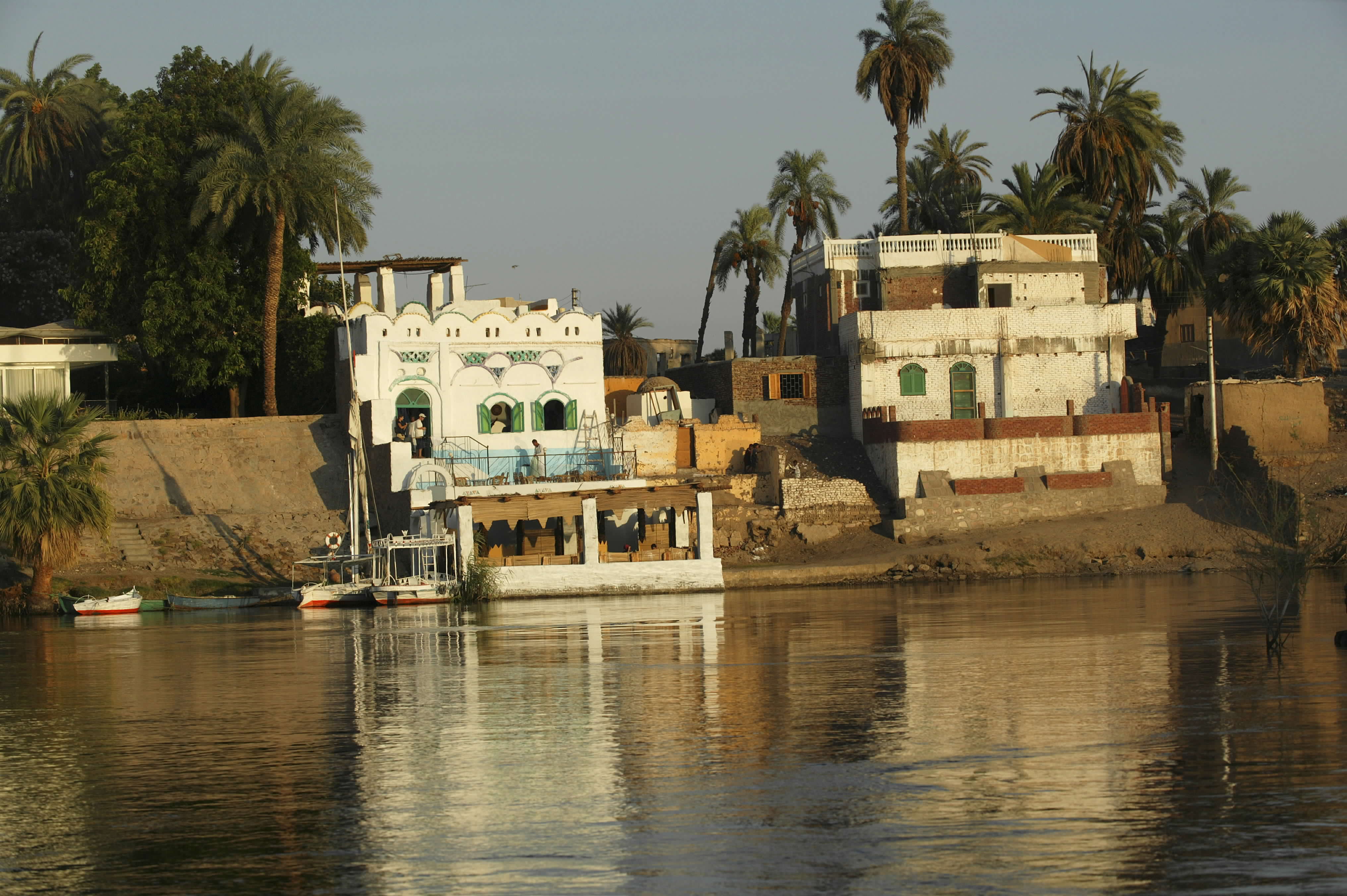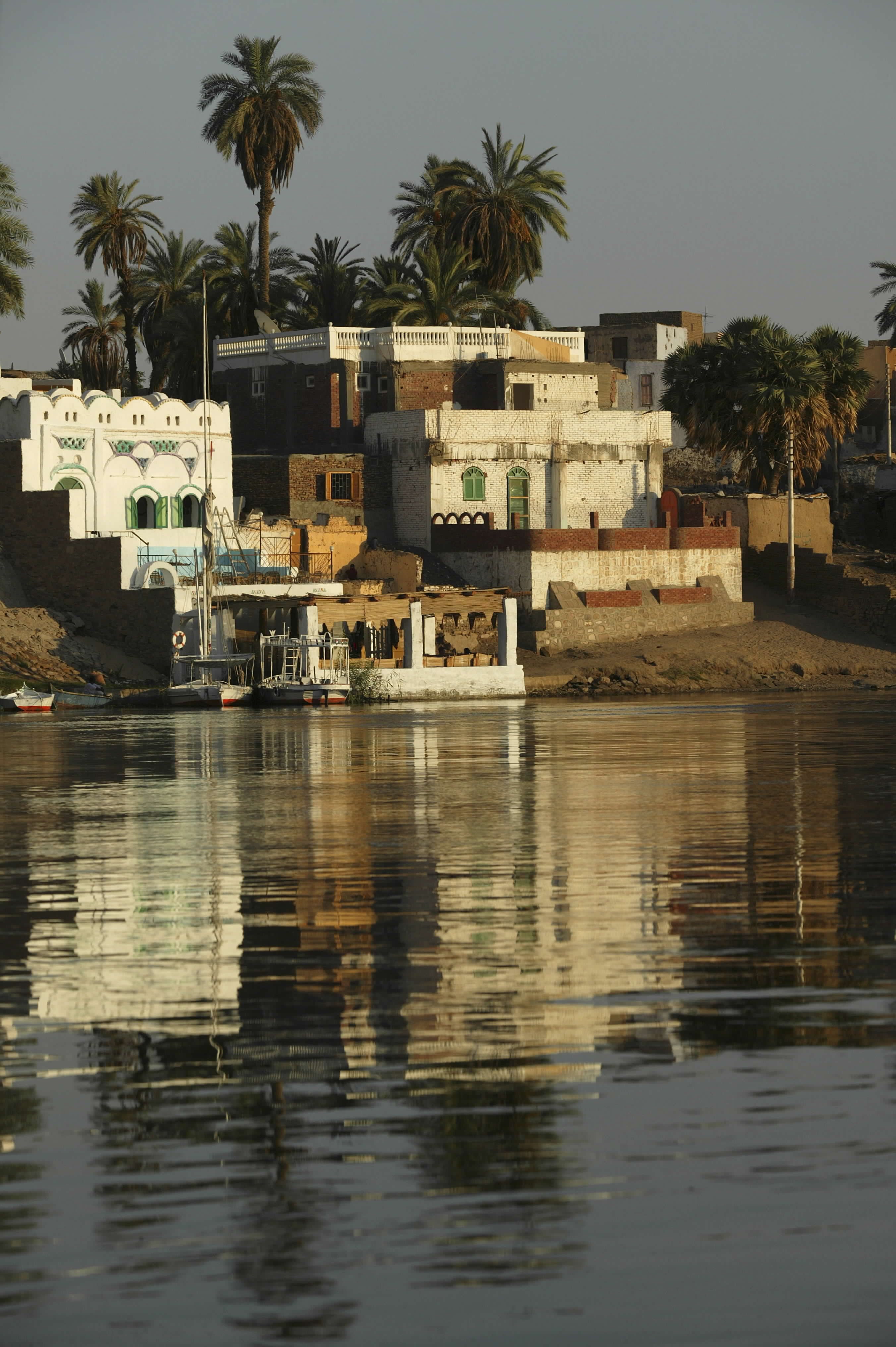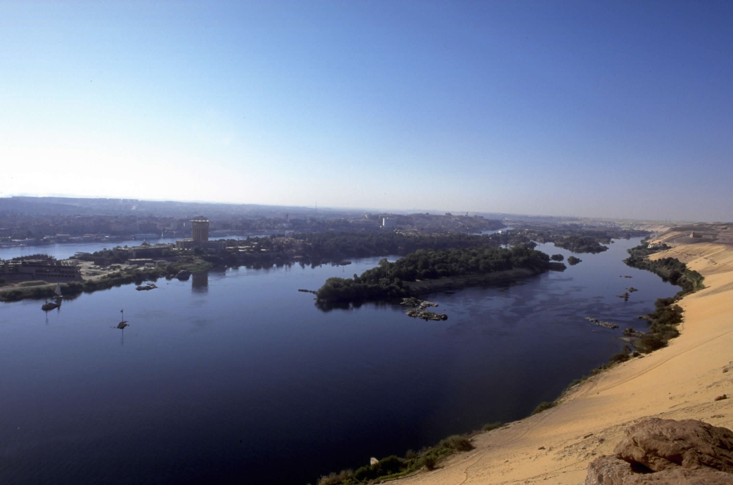 Assouan vue de la rive gauche du Nil; au premier plan, l'Ile Kitchener.