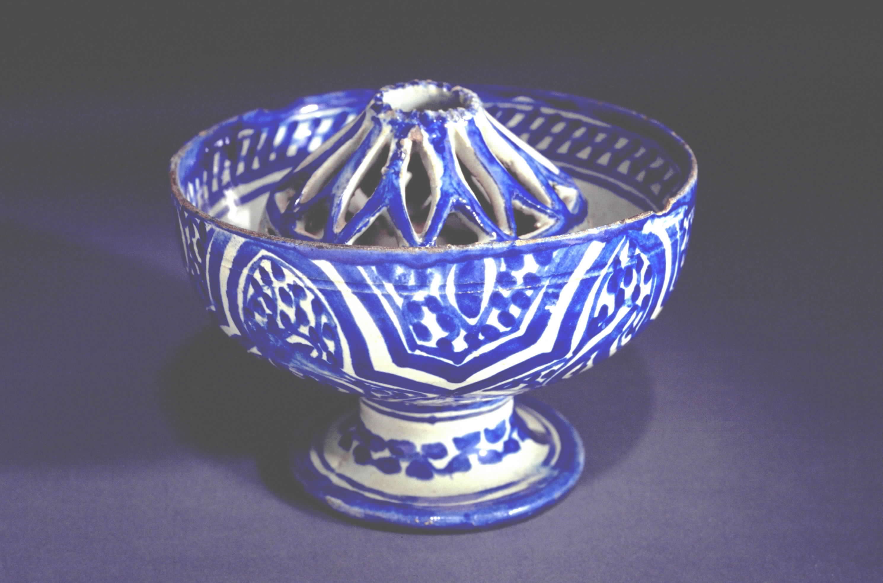 Presse-agrumes en céramique bleue ( musée Dar Batha ).